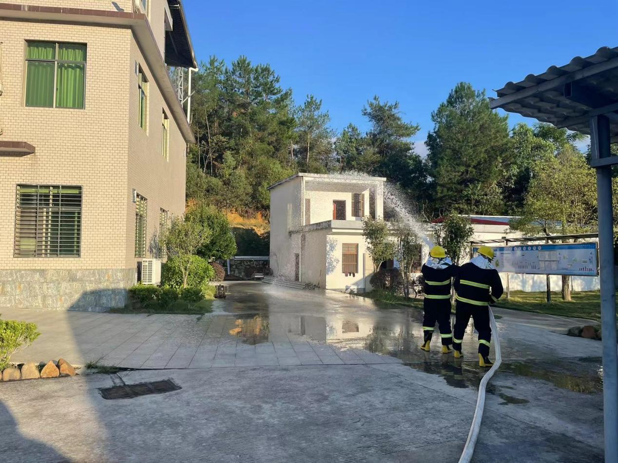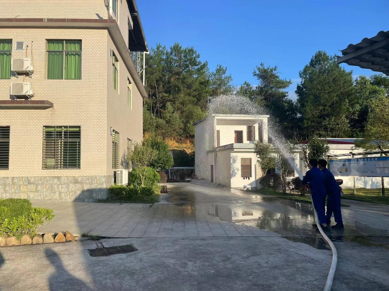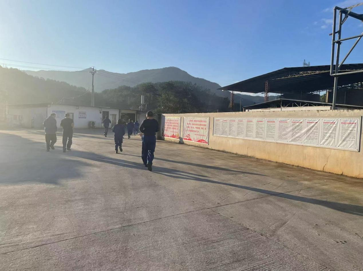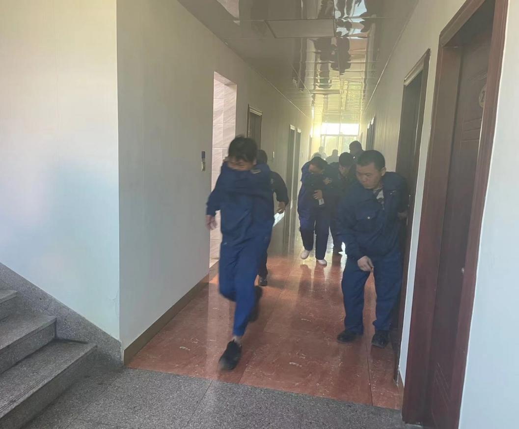 模擬員工宿舍突然起火,火勢發(fā)展迅猛并產(chǎn)生大量濃煙,通知每間宿舍內(nèi)人員進行撤離至廠區(qū)大門口安全地點,人員撤離時應(yīng)低頭彎腰、手捂住口鼻有序進行撤離。待所有人員撤離至安全地點時,清點人員。上報公司并撥打119進行報警。