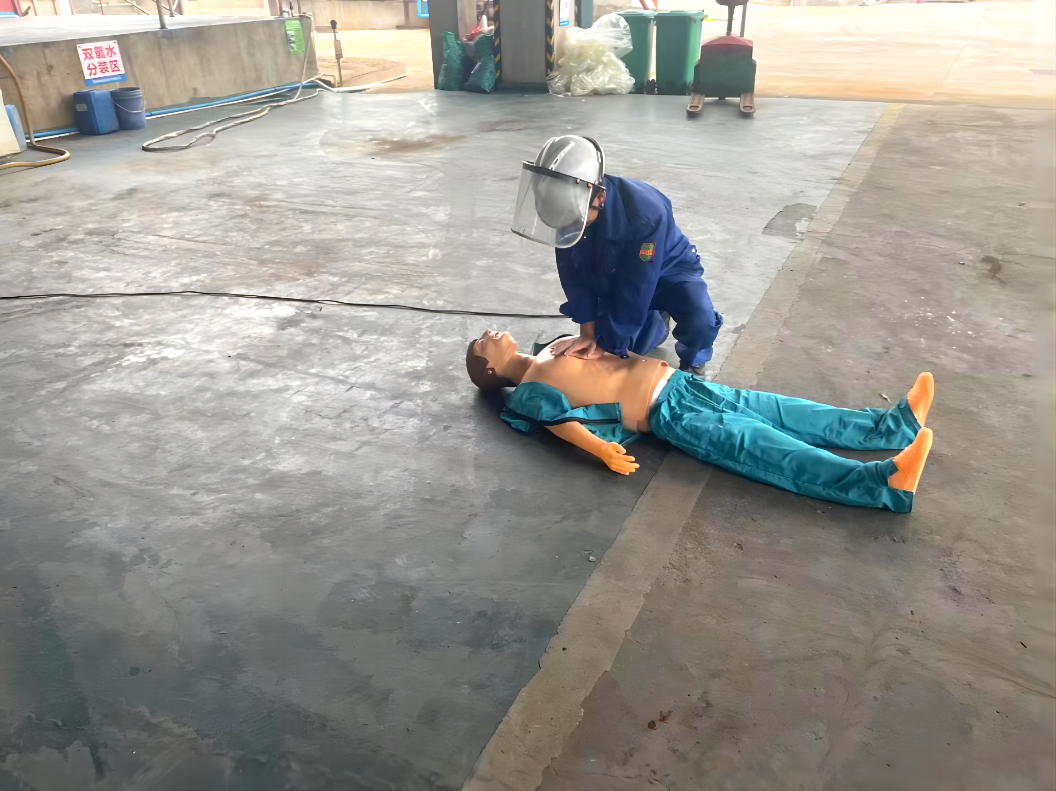 人員觸電演練:附近正在作業(yè)的同事發(fā)現(xiàn)有人員觸電,迅速斷開該電纜線電源開關(guān),隨后立即組織人員報120并對受傷者進行心肺復(fù)蘇,,并轉(zhuǎn)移至廠區(qū)外等待120急救車。