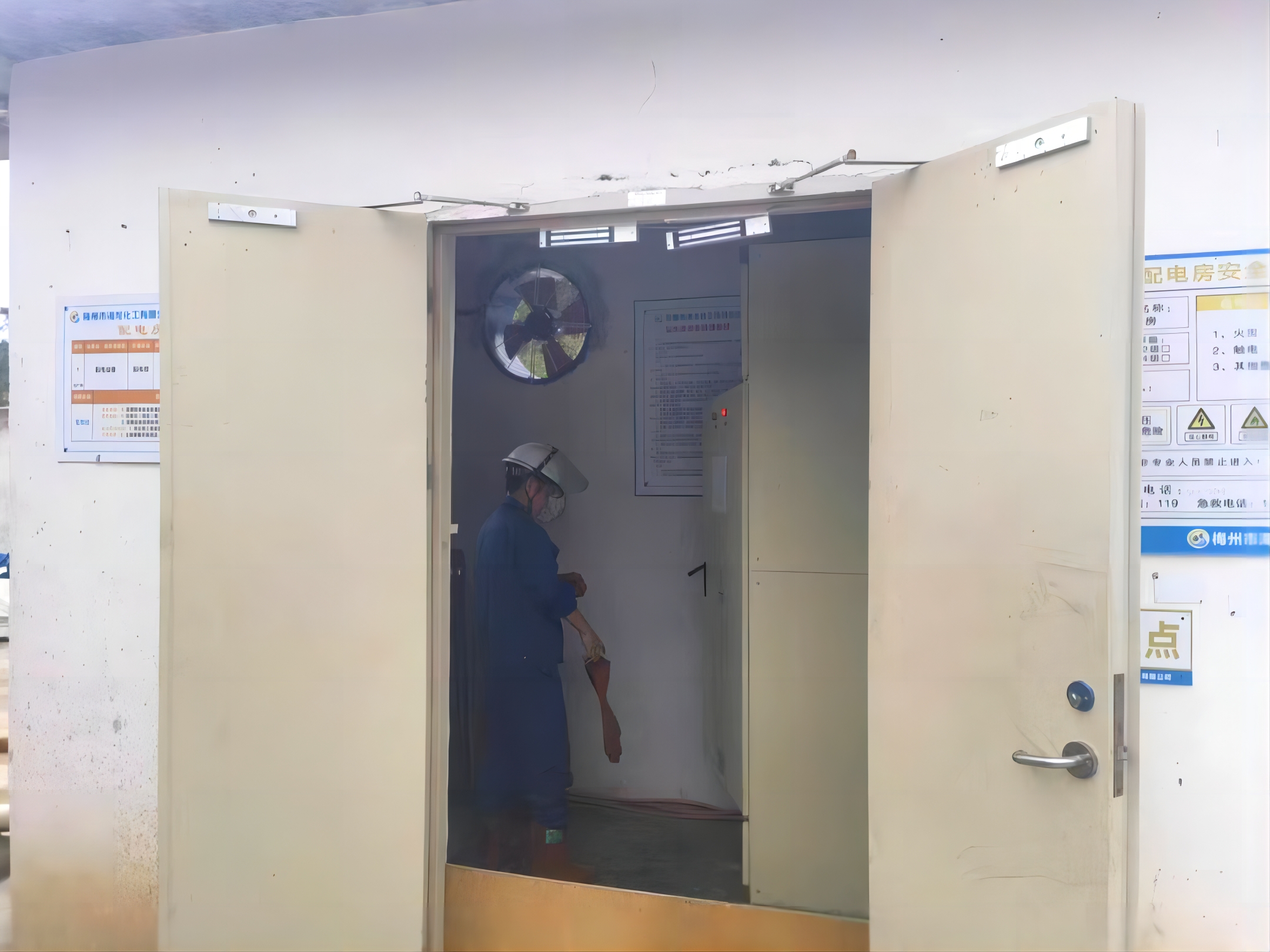模擬配電房著火,中控室值班人員聽到報警后立刻查看報警區(qū)域,隨后對講機通知電工,電工進行初期火災(zāi)撲滅,生產(chǎn)進行緊急停車,安排人員用滅火器進行救援并對電氣元器件及電纜進行檢查。