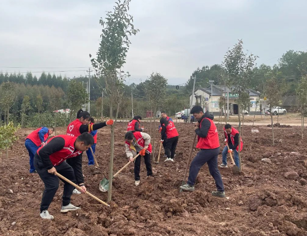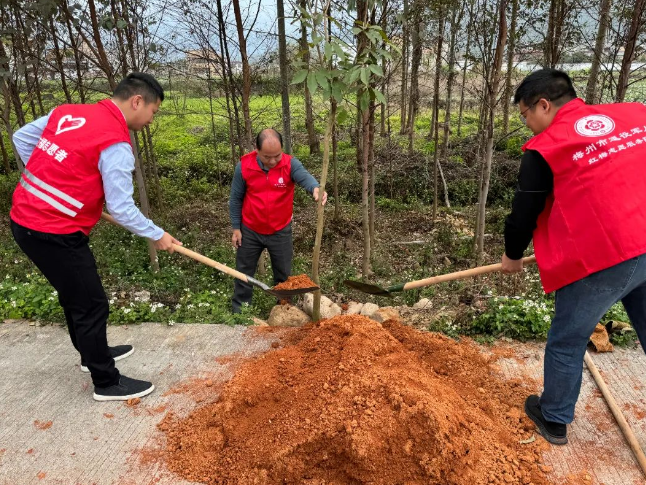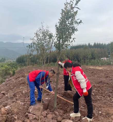 植樹現(xiàn)場,大家干勁十足,揮鍬鏟土、扶樹定根、培實新土,澆水灌溉,用心種下一顆顆樹苗。在全體人員的團結協(xié)作下,共種下樹苗數(shù)十顆,以實際行動踐行“綠水青山就是金山銀山”的生態(tài)文明理念,為推動家鄉(xiāng)綠化、打造綠美生態(tài)貢獻一份力量。