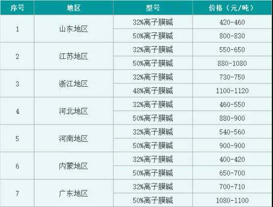 截止5月19日,國內(nèi)主流地區(qū)液堿市場參考價格如下: